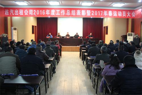 2017年1月10日,連汽出租公司2016年度工作總結(jié)表彰暨2017年春運動員大會在公司會議室隆重召開,海通汽車服務(wù)公司副總經(jīng)理相文昌、連云港市交警事故大隊馮維通警官出席會議,連汽出租公司黨政領(lǐng)導(dǎo)班子成員、“雷鋒的士”車隊隊員和部分駕駛員代表200余人參加會議。會議由分公司經(jīng)理成龍同志主持。