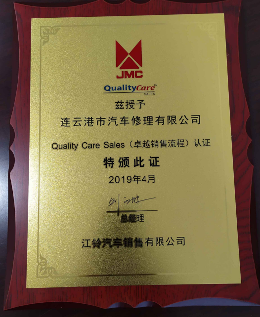 201812月下旬修理公司通過(guò)江鈴汽車QCS1.5銷售流程認(rèn)證以來(lái),2019420日修理公司再獲喜訊,公司順利通過(guò)江鈴汽車銷售有限公司QCS(卓越銷售流程)認(rèn)證。