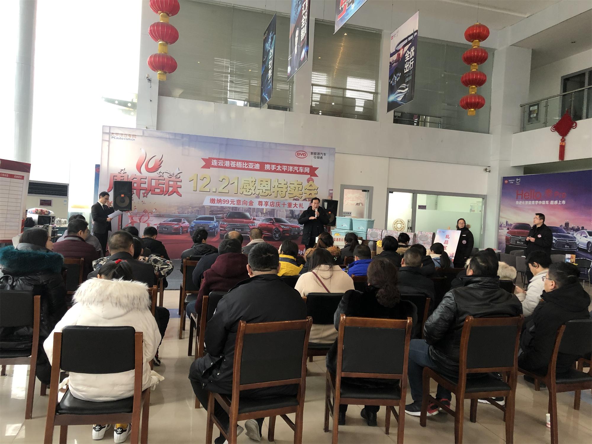 2019年12月21日下午,連云港蒼梧比亞迪4S店成立十周年慶典活動在比亞迪4S店銷售展廳隆重舉行。本次活動邀請了部分保有客戶、意向客戶和媒體代表參與見證了這輝煌榮耀的時刻。