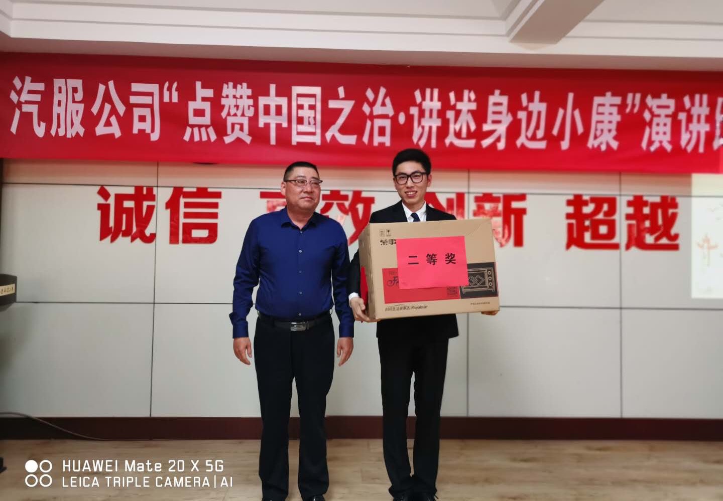 銷售事業(yè)部代表王剛以《“疫”路前行•點(diǎn)贊“中國之治”凝聚力》為題,結(jié)合疫情防控工作,生動講述了身邊的一個團(tuán)隊有關(guān)團(tuán)結(jié)和凝聚力的感人故事,為奪取疫情防控和經(jīng)濟(jì)社會發(fā)展“雙勝利”提供了強(qiáng)大精神力量,彰顯了“中國之治”的凝聚力。演講過程精彩紛呈,掌聲不斷。經(jīng)過激烈的角逐,最后王剛同志以優(yōu)異的成績榮獲汽服公司“點(diǎn)贊中國之治•講述身邊小康”演講比賽二等獎,比賽取得了圓滿成功。