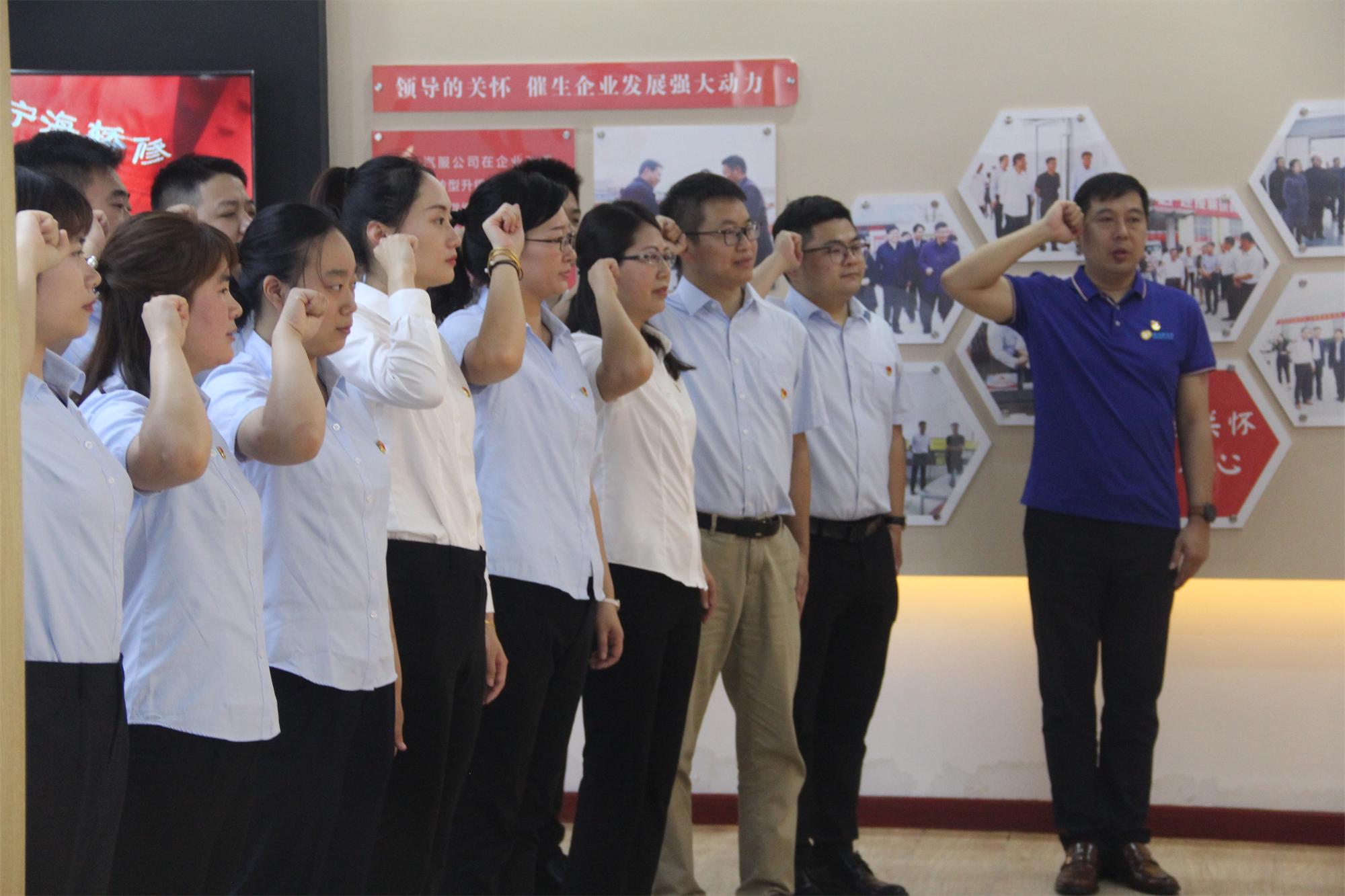 “我志愿加入中國共產(chǎn)黨,擁護黨的綱領,遵守黨的章程,履行黨員義務,執(zhí)行黨的決定,嚴守黨的紀律,保守黨的秘密,對黨忠誠,積極工作,為共產(chǎn)主義奮斗終身,隨時準備為黨和人民犧牲一切,永不叛黨!闭驹邗r艷的黨旗前,參加活動的黨員們莊嚴地舉起右拳,齊聲宣誓,重溫入黨誓詞,聲音鏗鏘而豪邁。