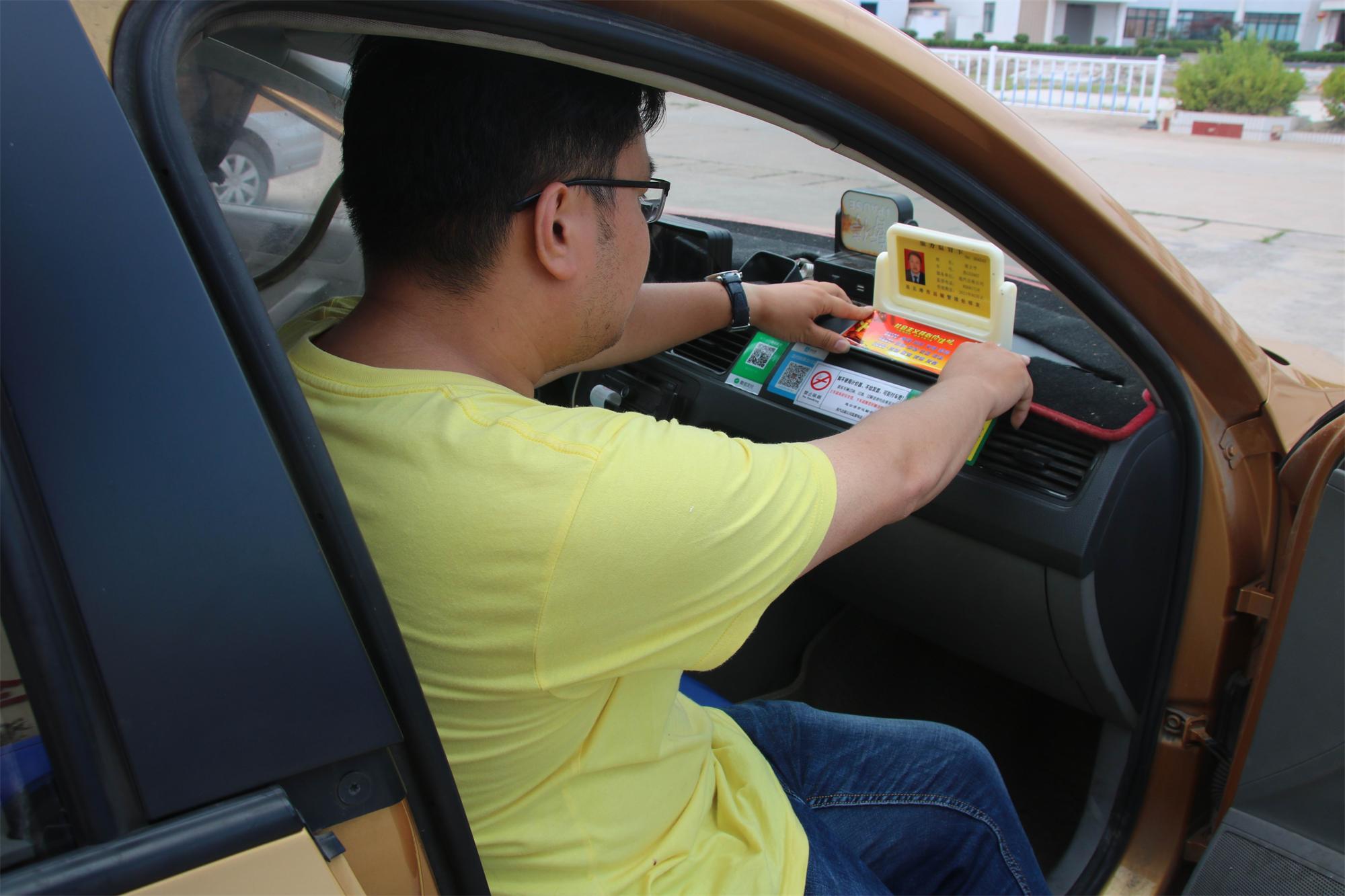 紙質(zhì)服務(wù)監(jiān)督卡安裝于出租車副駕駛座正前方,監(jiān)督卡上除有駕駛員的姓名、照片、車號(hào)、所屬公司外,在監(jiān)督卡的底座,還著重標(biāo)注了社會(huì)主義核心價(jià)值觀內(nèi)容。