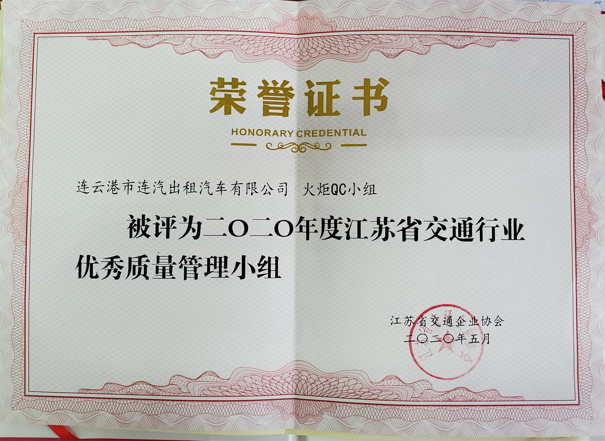 近日,從江蘇省交通企業(yè)協(xié)會(huì)處獲悉,連汽出租公司的火炬QC小組喜獲2020年度江蘇省交通行業(yè)優(yōu)秀質(zhì)量管理小組稱號(hào)。