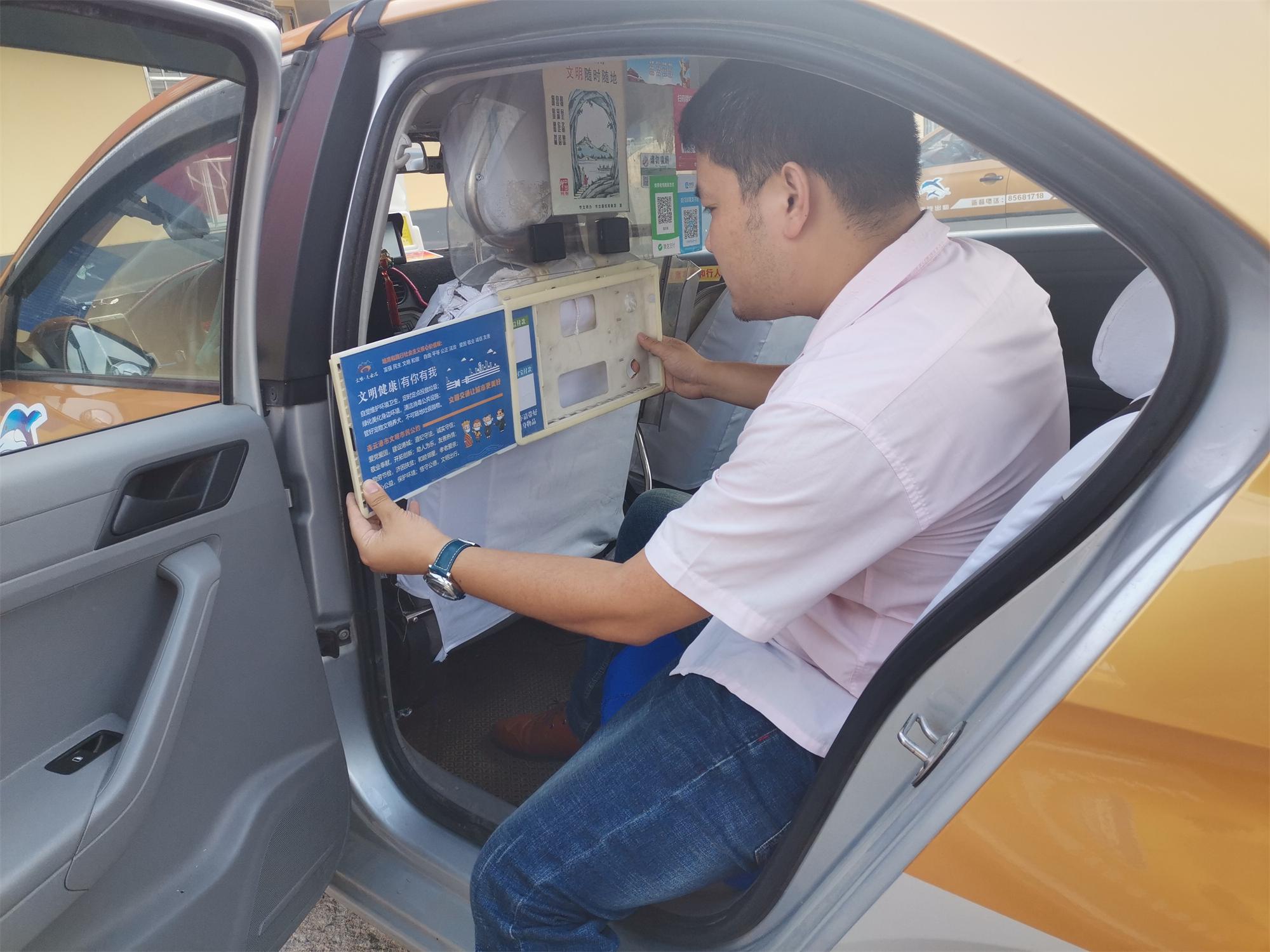 根據(jù)市相關(guān)主管部門規(guī)定和創(chuàng)建全國(guó)文明城市相關(guān)要求,事業(yè)部所屬的全福和連汽兩家出租公司的所有出租車上全部張貼“文明·連云港”公益廣告(內(nèi)容涉及:社會(huì)主義核心價(jià)值觀、文明健康有你有我、連云港市文明市民公約等),確保從業(yè)駕駛員及乘客知曉率達(dá)100%。同時(shí),在出租車LED屏滾動(dòng)播出創(chuàng)建全國(guó)文明宣傳標(biāo)語(yǔ),讓全福和連汽公司出租車“變身”為創(chuàng)建全國(guó)文明城市的流動(dòng)宣傳窗口。