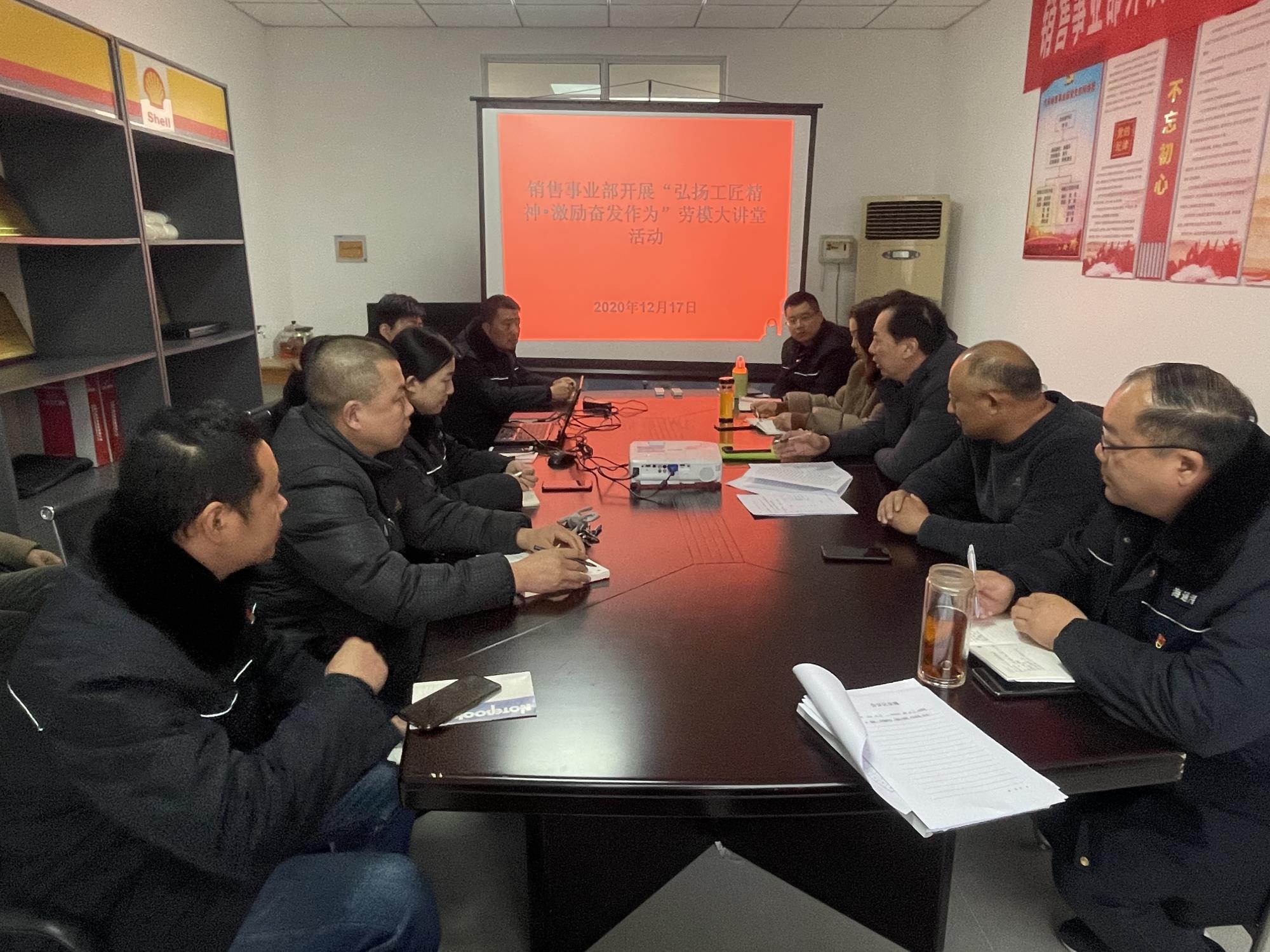 為大力弘揚(yáng)工匠精神,進(jìn)一步激勵(lì)廣大職工奮發(fā)作為,營(yíng)造勞動(dòng)最光榮的企業(yè)風(fēng)尚和精益求精的敬業(yè)風(fēng)氣,12月17日下午,銷售事業(yè)部積極開展“弘揚(yáng)工匠精神•激勵(lì)奮發(fā)作為”勞模大講堂活動(dòng)。銷售事業(yè)部10余名干部職工參加活動(dòng),活動(dòng)由經(jīng)理欒文忠主持。