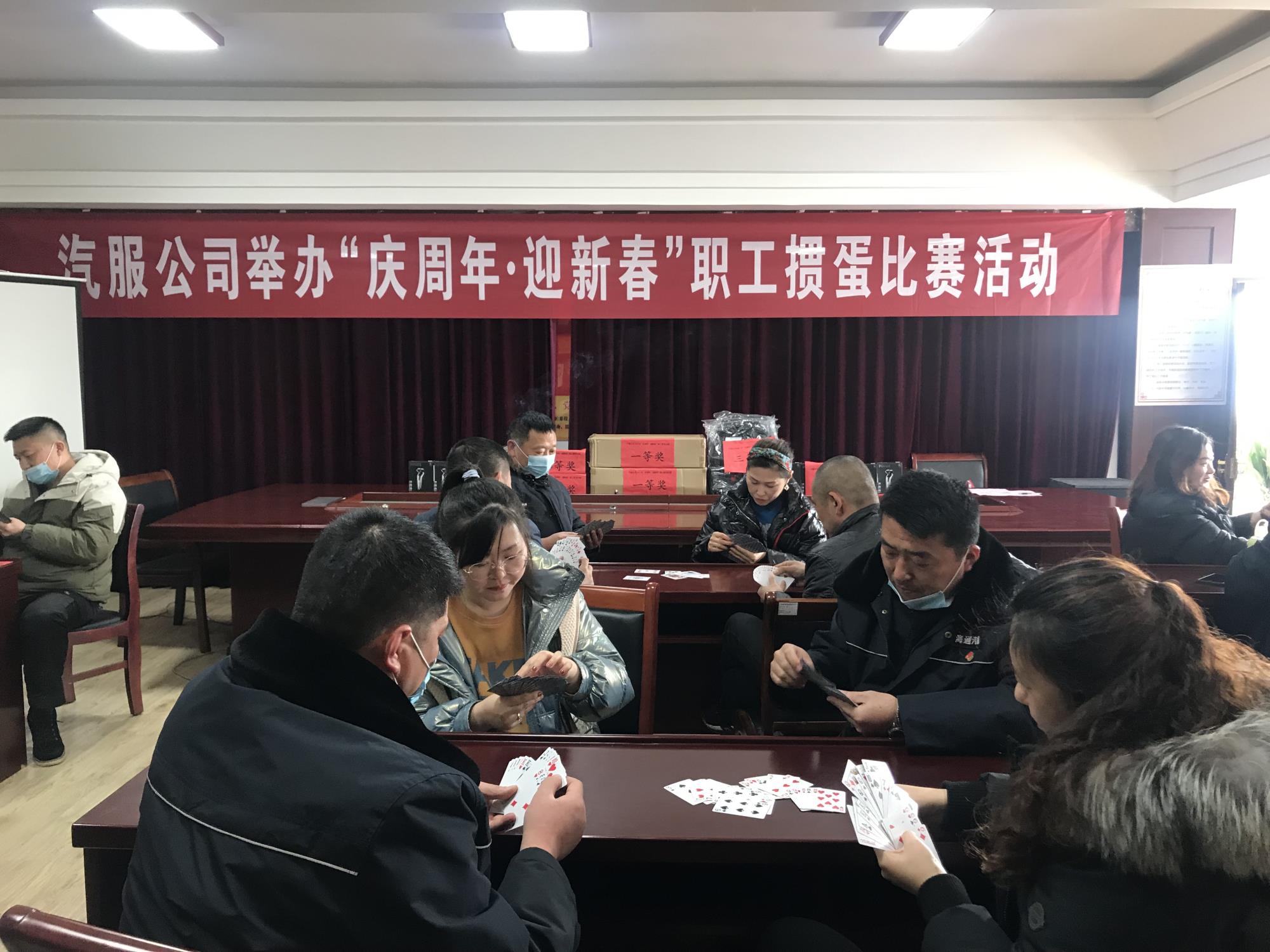玉鼠報(bào)喜辭舊歲,金牛納福共迎春!為慶祝汽服公司成立八周年及迎接2021年新年的到來,公司工會(huì)于2月10日在會(huì)議室舉辦了“慶周年·迎新春”職工摜蛋比賽活動(dòng)。在公司黨委、總經(jīng)理室的大力支持下,在疫情防控的要求下,公司工會(huì)組織了24名干部職工戴好口罩、做好體溫監(jiān)測參與此次活動(dòng)。
