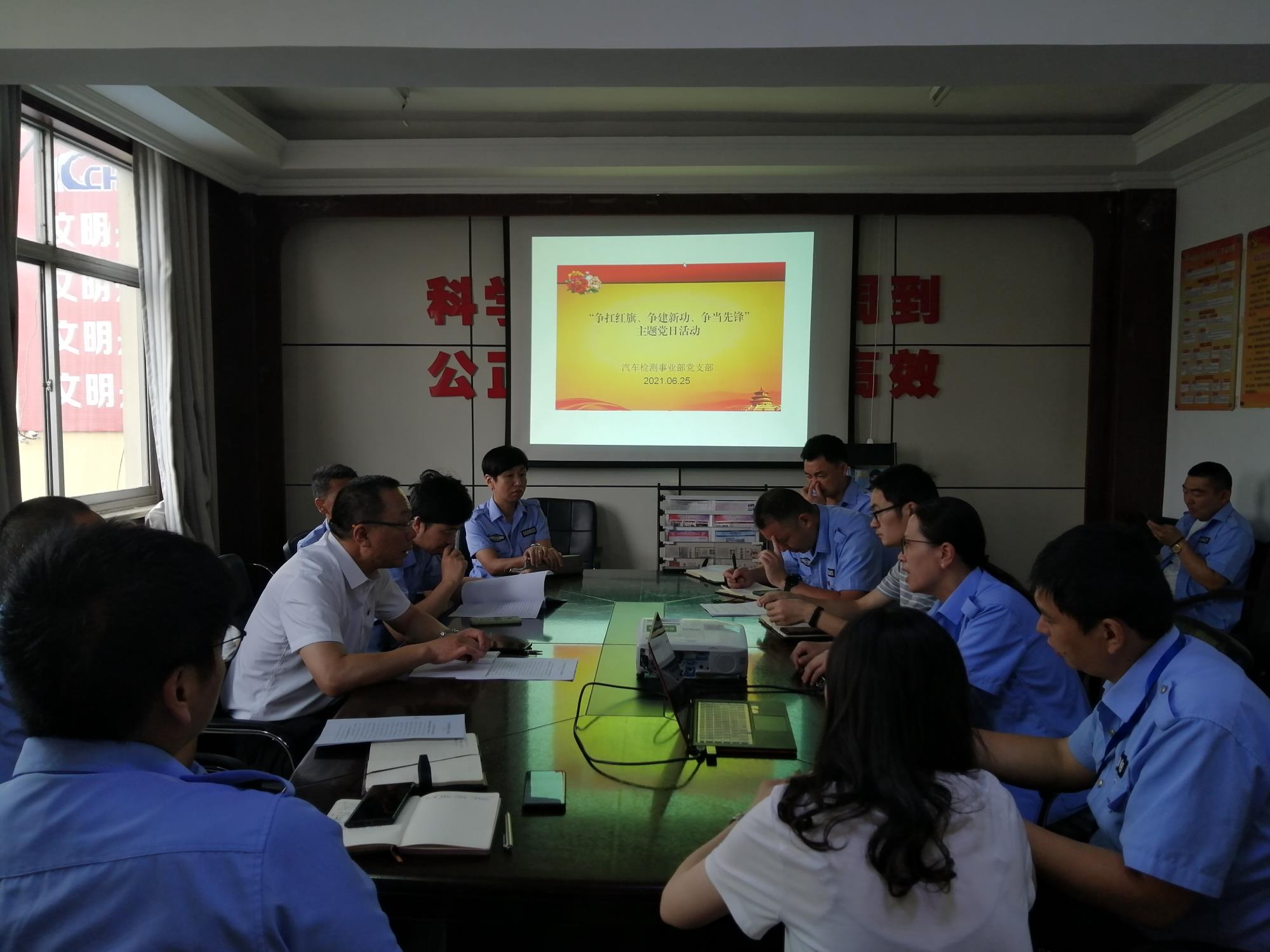 為深入落實(shí)黨史學(xué)習(xí)教育要求,以昂揚(yáng)向上的奮斗姿態(tài)迎接中國(guó)共產(chǎn)黨成立100周年,激勵(lì)黨員干部職工融入公司高質(zhì)發(fā)展實(shí)踐中,6月25日上午,汽車檢測(cè)事業(yè)部黨支部利用班前半小時(shí)時(shí)間,組織黨員、積極分子開(kāi)展 “爭(zhēng)扛紅旗、爭(zhēng)建新功、爭(zhēng)當(dāng)先鋒”主題黨日活動(dòng)。