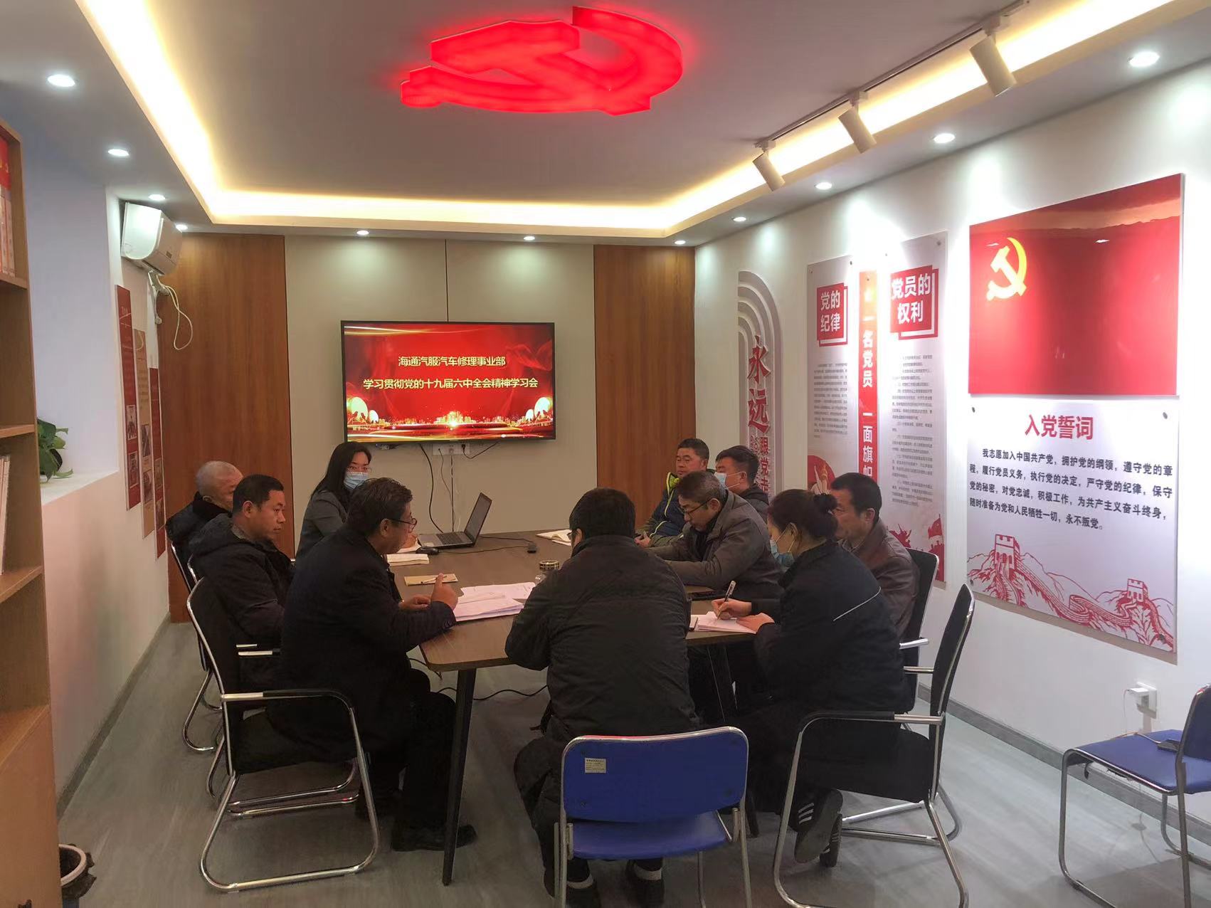 11月25日下午,汽車修理事業(yè)部黨支部組織全體黨員學習中國共產(chǎn)黨第十九屆六中全會精神,支部書記申俊連主持學習會。