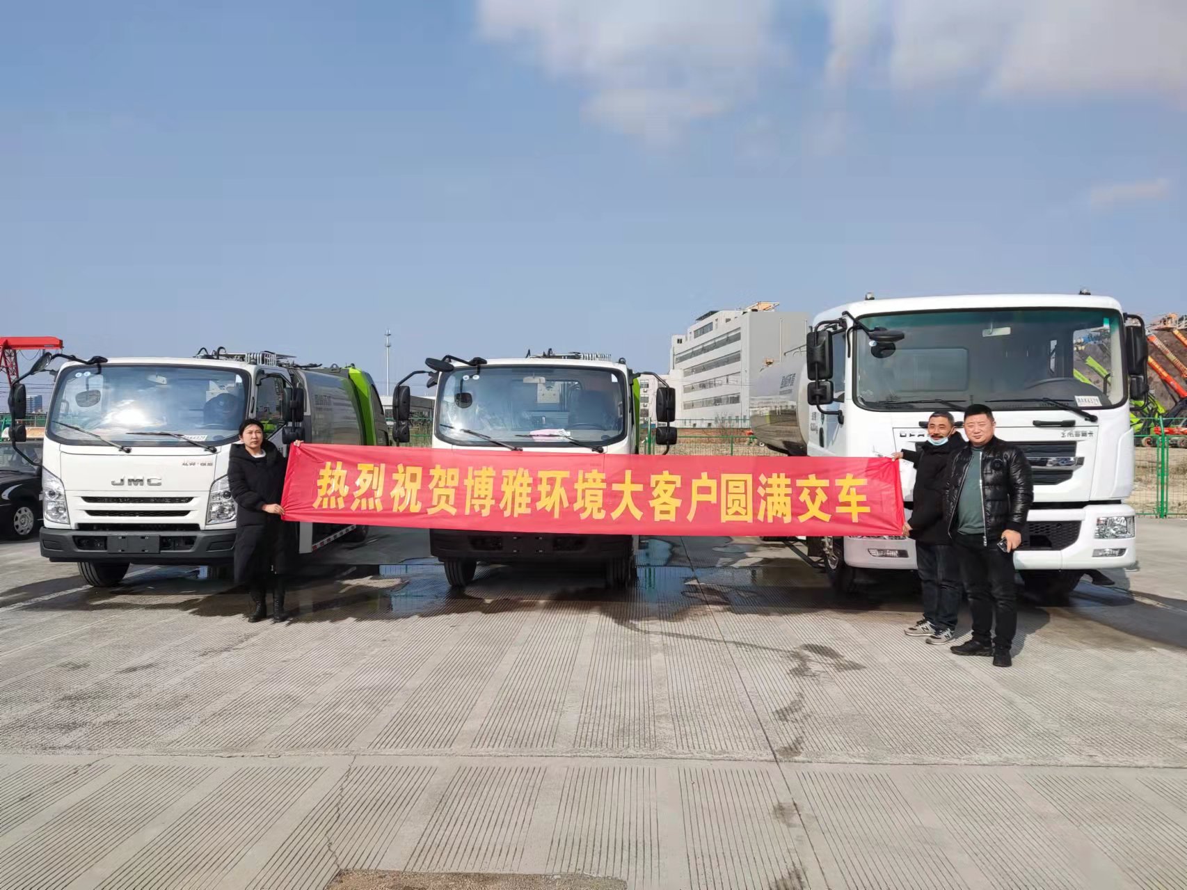日前,汽車銷售事業(yè)部成功交付連云港博雅環(huán)境有限公司3臺(tái)中聯(lián)重科品牌特種車輛(灑水車、垃圾車、壓縮車),實(shí)現(xiàn)春節(jié)后首個(gè)“開門紅”。
