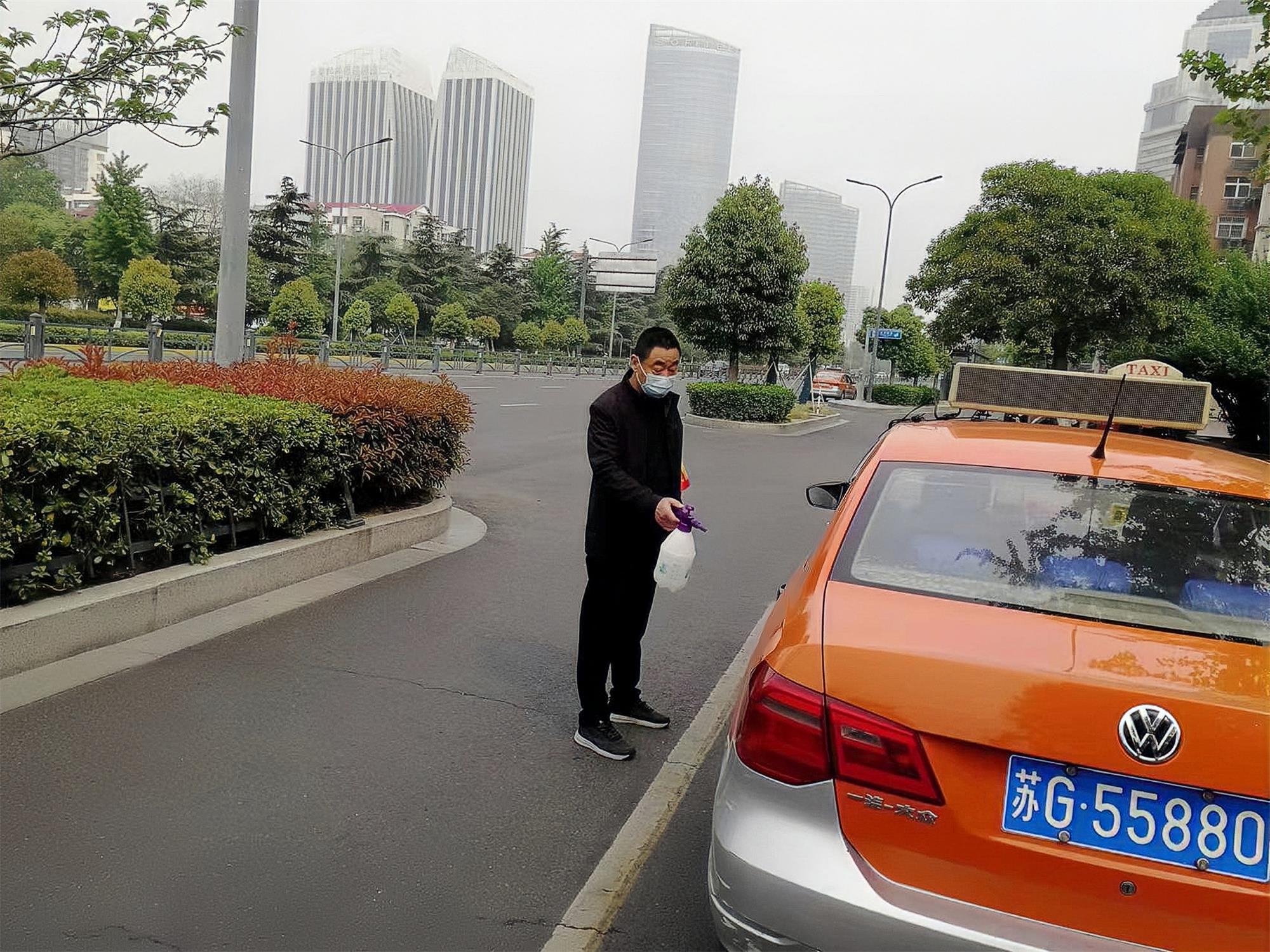 “師傅,您好!給您量一下體溫,請您再稍等一下,我再把您車輛從里到外消毒一下,請您在營運過程中規(guī)范佩戴好口罩、保持通風(fēng)!5月1日,在蘇欣站消殺點值班值守的出租汽車事業(yè)部管理人員成以廷說道。