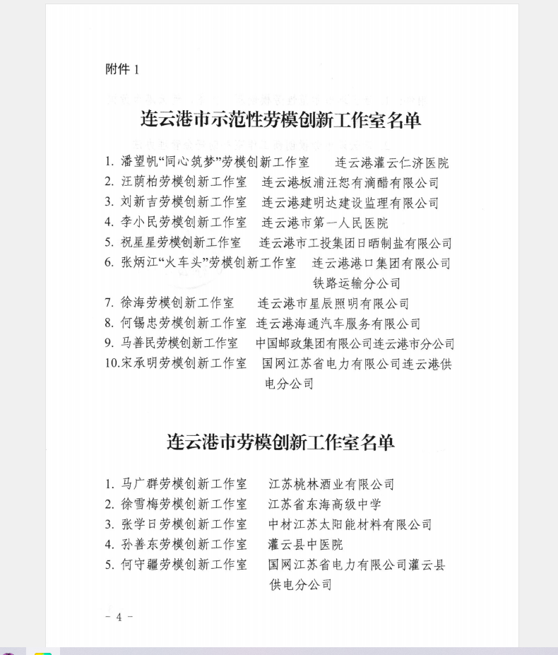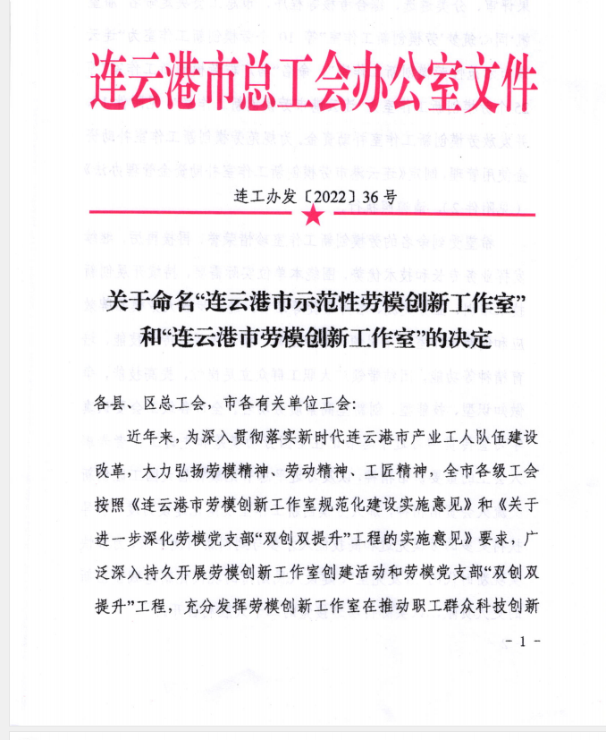 由于勞模何錫忠在汽車噴涂行業(yè)中取得的優(yōu)異成績,2022年6月份,經(jīng)基層工會(huì)申報(bào)、成果評(píng)審等程序,“何錫忠勞模創(chuàng)新工作室”被連云港市總工會(huì)命名為“連云港市示范性勞模創(chuàng)新工作室”。