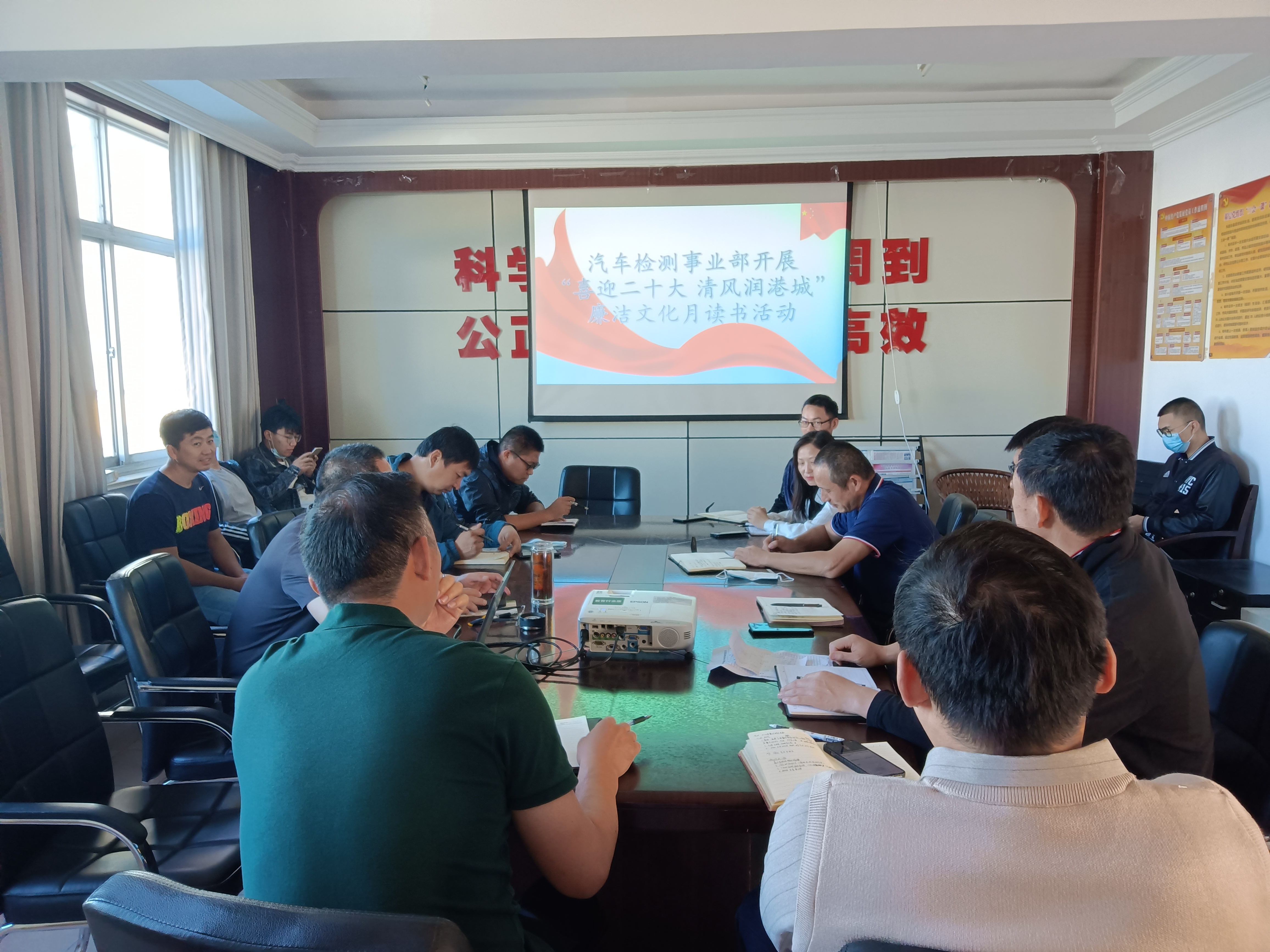 9月26日,汽車檢測事業(yè)部開展“喜迎二十大 清風潤港城”廉潔文化月讀書活動。汽車檢測事業(yè)部黨支部副書記李強同志帶領(lǐng)全體黨員閱讀《江蘇歷代賢吏為官之道》一書,一同喚起歷史記憶,堅定歷史自信。此書甄選200余名在江蘇任職或江蘇籍在外有代表性的賢吏,遵循春生、夏長、秋收、冬藏的自然規(guī)律,教育引導廣大黨員干部見賢思齊,做到清正做人、廉潔從政,書寫無愧于新時代的答卷。