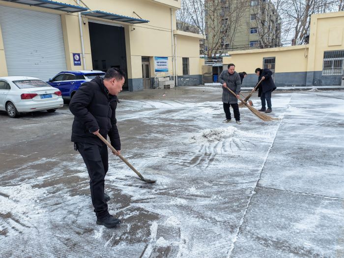 大家迎著寒風(fēng),揮舞著長(zhǎng)長(zhǎng)的鐵鍬、拿著寬寬的掃帚,齊心協(xié)力掃雪除冰,公司院內(nèi)不時(shí)傳出鐵鍬與地面的摩擦聲,夾雜著掃帚的沙沙聲,奏響了一曲掃雪歌。