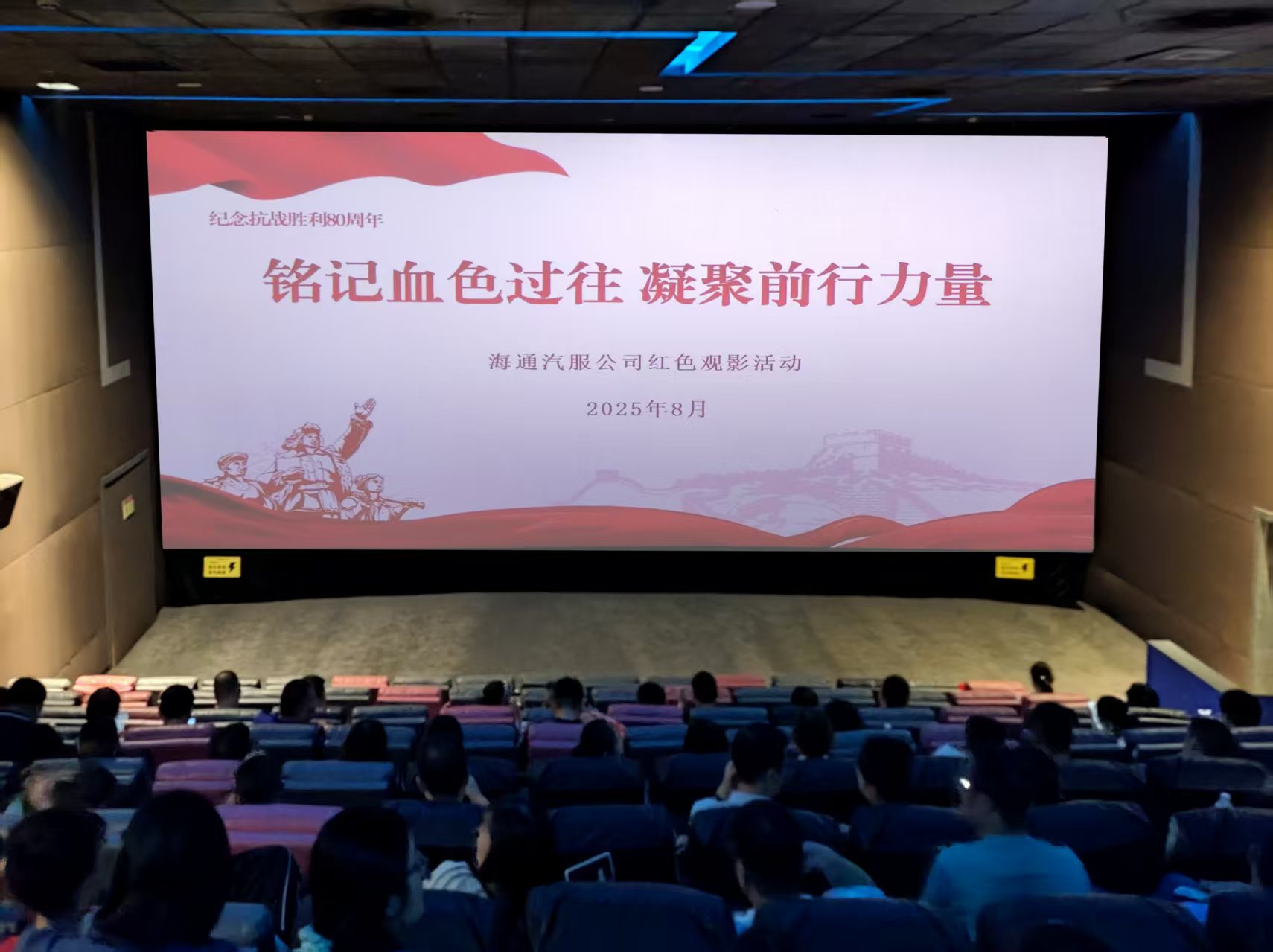 為紀(jì)念中國人民抗日戰(zhàn)爭暨世界反法西斯戰(zhàn)爭勝利80周年,深化愛國主義教育,8月15日,海通汽車服務(wù)公司組織開展"銘記血色過往、凝聚前行力量"主題紅色觀影活動,通過觀影引導(dǎo)干部職工重溫抗戰(zhàn)歷史,傳承紅色基因。