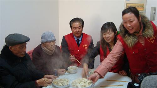 黨員的哥、的姐志愿者們精心準備了肉餡為老人包起了餃子,品嘗著熱氣騰騰可口的餃子,78歲史玉珍老人高興地唱起了美麗的連云港和中國夢。
