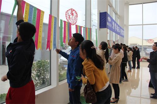 下午3點(diǎn)準(zhǔn)時開始,90名干部職工參加活動,170余條顏色不一的謎語條高高掛起,謎語有猜成語的,有猜動物花鳥的,有猜字的,有猜日常用品的,內(nèi)容以通俗易猜的居多。活動現(xiàn)場,職工們或駐足細(xì)看,或低頭思索,或互相討論,認(rèn)真地回答著燈謎。在謎語猜中后,拿著謎題到兌獎處,不管猜對與否都開心得哈哈大笑。在領(lǐng)獎處,猜中的可以參加抽獎,分三個獎項(xiàng),更是一番熱鬧忙碌的情景,職工們拿著抽中的獎品更是把活動現(xiàn)場的氣氛推向高潮。