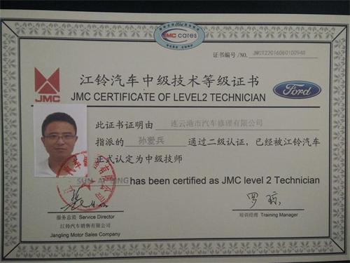 為提高修理公司高技能人才培養(yǎng),提升一次性修復率,減少客戶車輛待廠時間,4月6日-4月13日,汽服修理公司孫愛兵參加江鈴公司維修人員二級技師的培訓并順利通過認證。