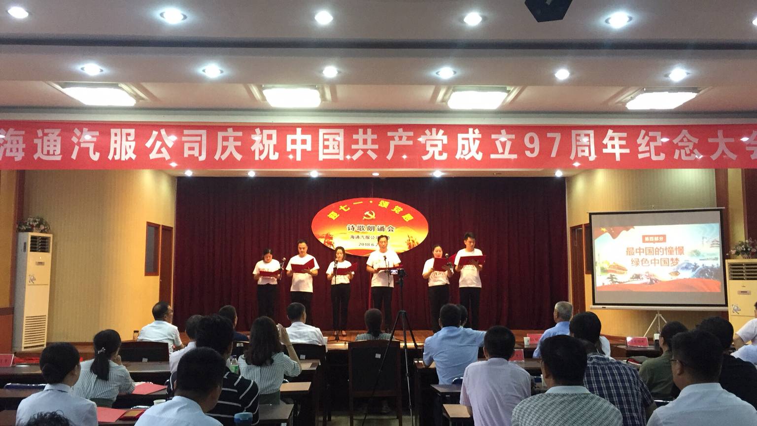 為慶祝中國共產(chǎn)黨建黨97周年,海通汽服公司在連汽出租公司會議室舉行“七一”表彰暨“迎七一·頌黨恩”詩歌朗誦會活動。為強(qiáng)化租賃公司全體職工的責(zé)任感與使命感,激發(fā)他們走前列、當(dāng)先進(jìn),租賃公司在經(jīng)理李霞、副經(jīng)理欒文忠的帶領(lǐng)下,共組織6名員工參加此次詩歌朗誦會,朗誦題目為《厲害了,我的國》。